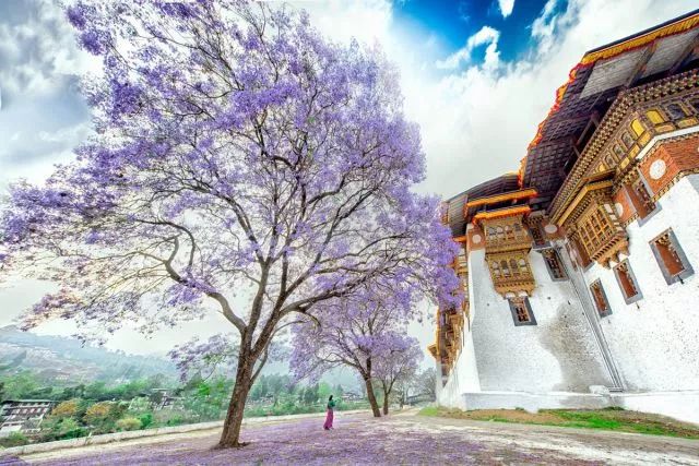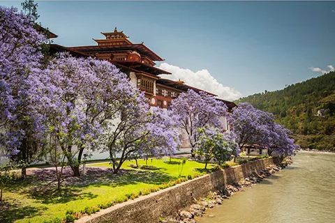 ||普纳卡宗,不丹的第二座城堡,是不丹统治者居住和举行重大政治和宗教仪式的重要场所。普纳卡宗是被公认的全不丹最美丽的宗堡,特别是在春季,环绕宗堡蓝紫色的蓝花楹盛开的时候,整个河畔鲜花烂漫,风光格外旖旎动人。