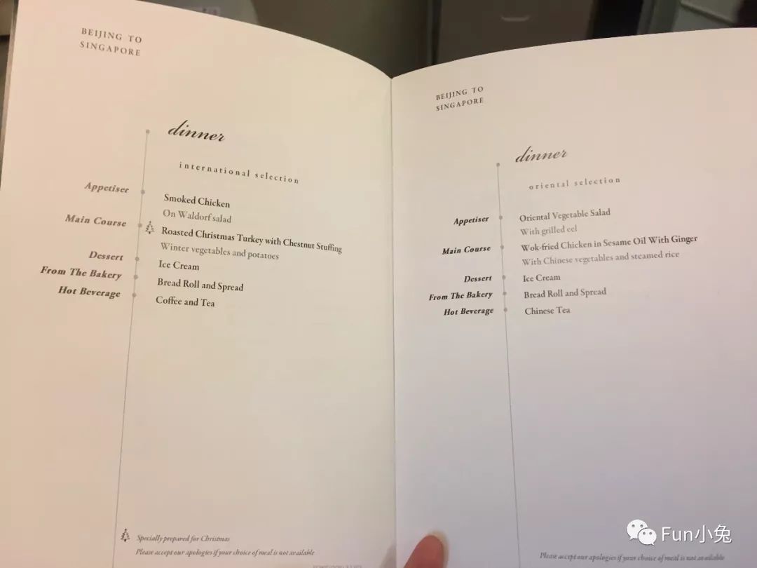 飞机起飞后,空乘就给大家发menu,我认真地读了好几遍。。。。。
