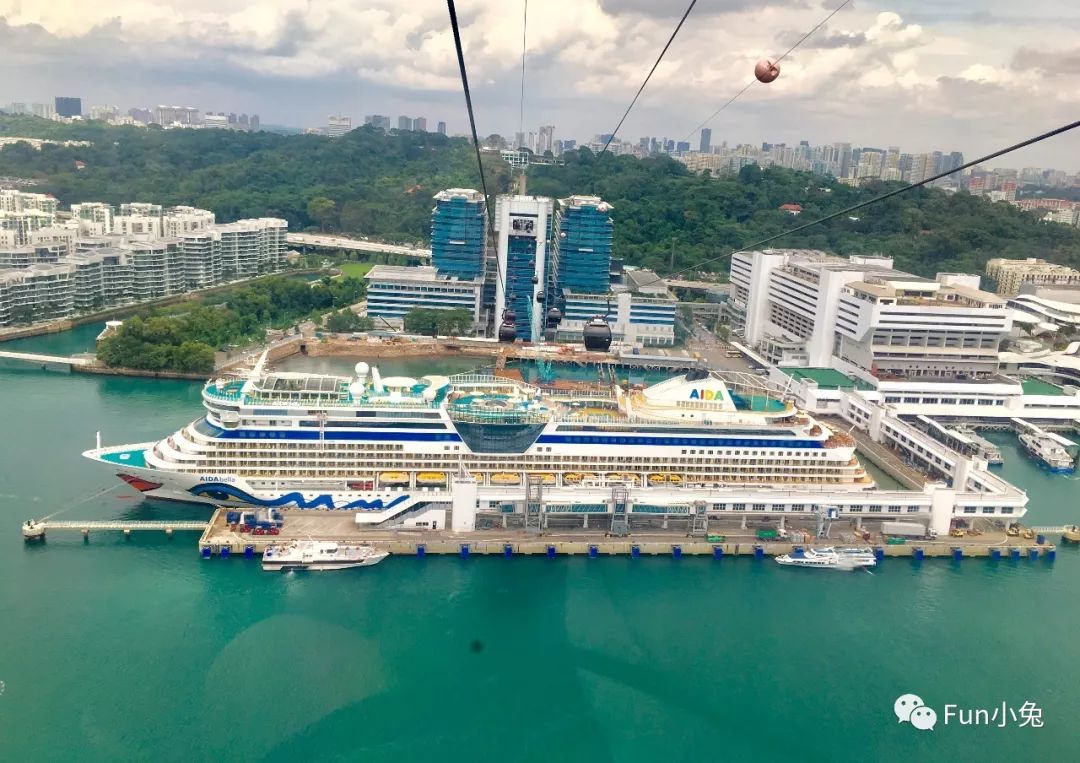 在圣淘沙岛体验缆车,既可以对岛上及周边海域的美景一览无余,还时不时会有惊喜的风景等着你,比如我们这次遇到了停靠在港口的爱达邮轮,在缆车上一览无余地俯瞰到邮轮的日光浴游泳池,几万吨重的邮轮瞬间看上去就像夏威夷海滩边的快艇一样,别有一番风味。