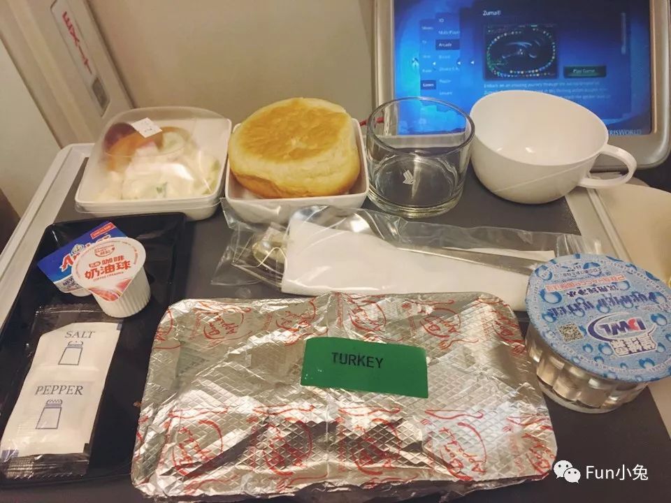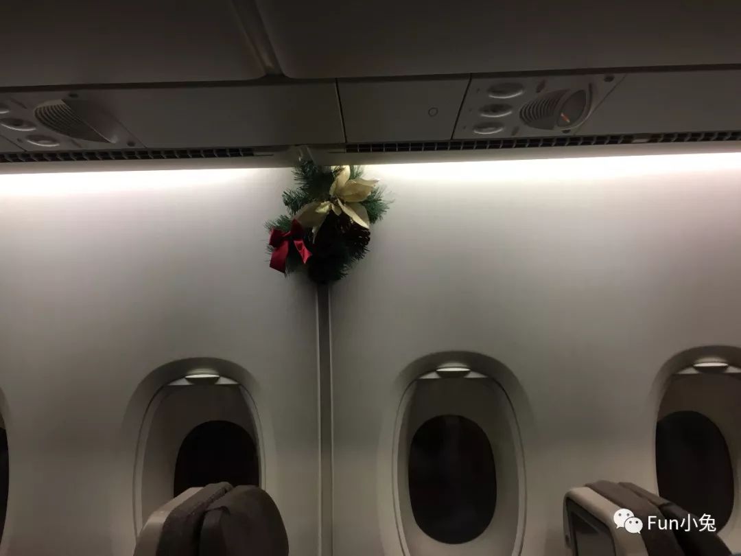 圣诞节刚过,机舱内还有圣诞花环装饰,我们也可以点圣诞节限定火鸡饭,假装过圣诞ing。。。
