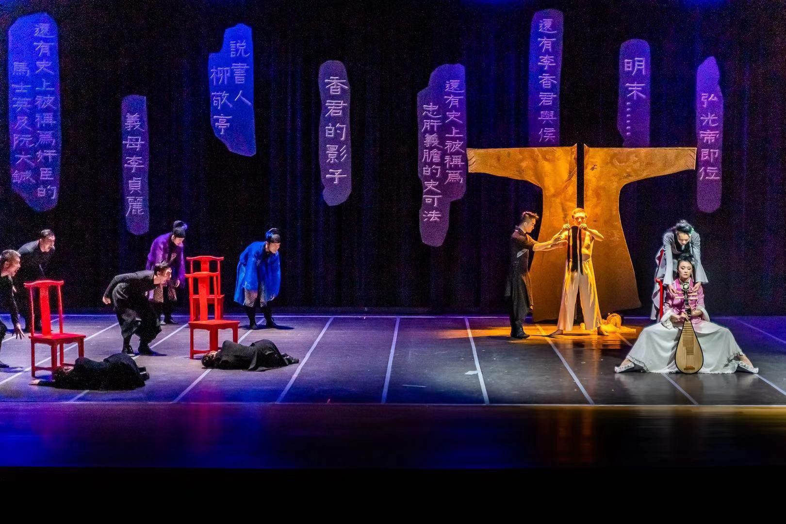 跨界舞剧《桃花扇—香君的琵琶》,灵感源自清代戏曲家孔尚任的《桃花扇》,运用舞蹈、戏剧、肢体表达和装置艺术等多元语汇,带给新加坡观众耳目一新的体验。