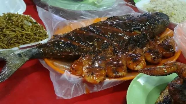 接着是当地的夜市 沙巴环海,而且穆斯林国家,海鲜是主角 也是的烤鱼一般,都是烤好了放那,有客人点时再加热,或者未加工的,可以根据客人要求煮炒 其实最好吃的还是夜市的炒面和炒饭