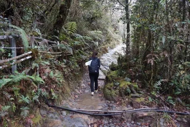 回头看爬过的路,蜿蜒曲折,在大山的衬托下,我们如此的渺小,走过的路就像一条隐隐约约的线 因人不同,有些人觉得下山比上山难,经过第一天的超支运动,第二天会出现全身酸痛,下山大腿更容易发抖无力,并且经过潮湿的热带树林,路途总是泥泞容易打滑,这时候爬山杖发挥着大作用。 而我则是下山比上山轻松,只要没有出现抽筋一切都是美好的过程。 下山的时候我们变成第一天上山给我们加油鼓励的登山者,路遇到正在登山的其他人都会自然而然给他们微笑,加油打气,而且悠然产生一种自豪感,因为快完成了一项自己都不感相信的事