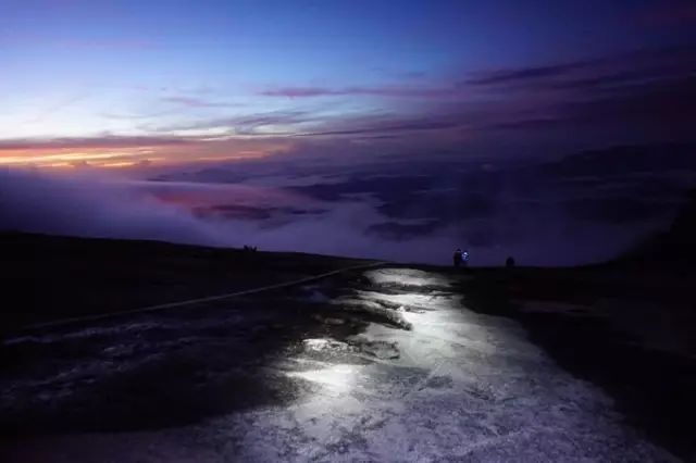 我完全不想回想下午5点前痛不欲生的过程,反正到站后看到山上的风景和小伙伴们,只有欣慰,好像得救,找到组织了。 当时心理还有一件非常不痛快的事在纠结,向导劝我不要爬顶看日出,他觉得我会拖累团队,耽误时间,而且时常抽筋,无法确定我的状态。 好不容易经过8小时到达休息站,居然被劝放弃看日出,只有说不出的委屈 经过和团队成员讨论,决定看到时的状态,如果可以,小伙伴还是希望能一起爬完剩下的海拔2公里
