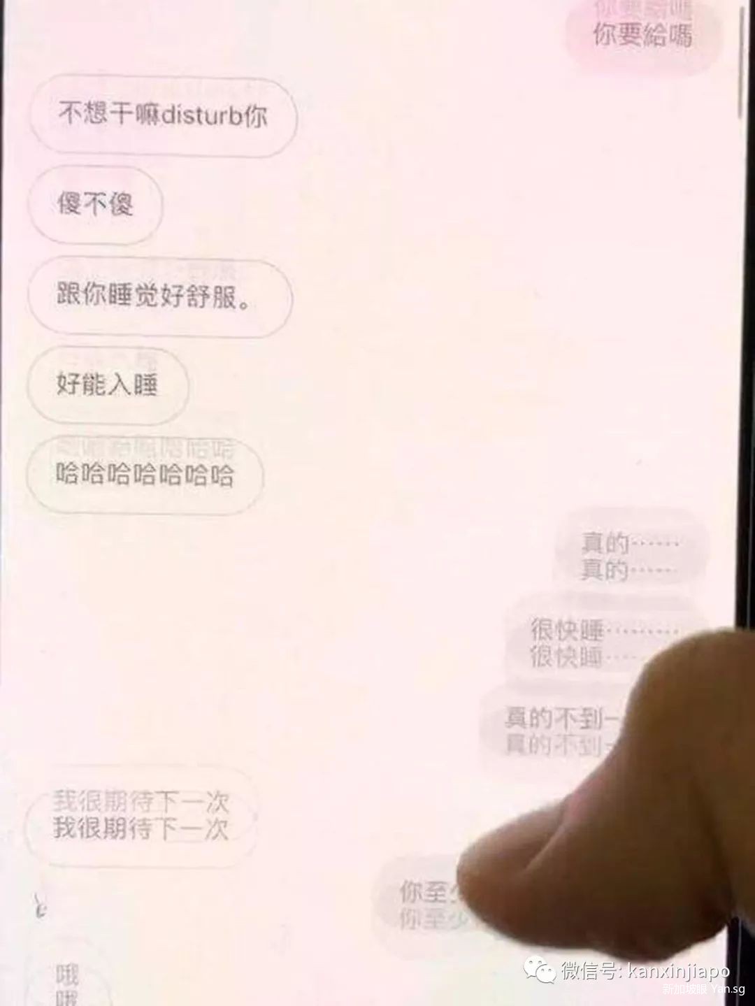 方伟杰公然在短信里说“跟你睡觉好舒服……”黄思恬则回复“真的,很快睡……”