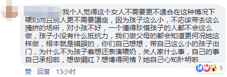 但这名网友马上就被其他网友反驳,认为他/她说的话很不适宜,有些时候孩子突然饿了,做母亲的给孩子喂奶天经地义。