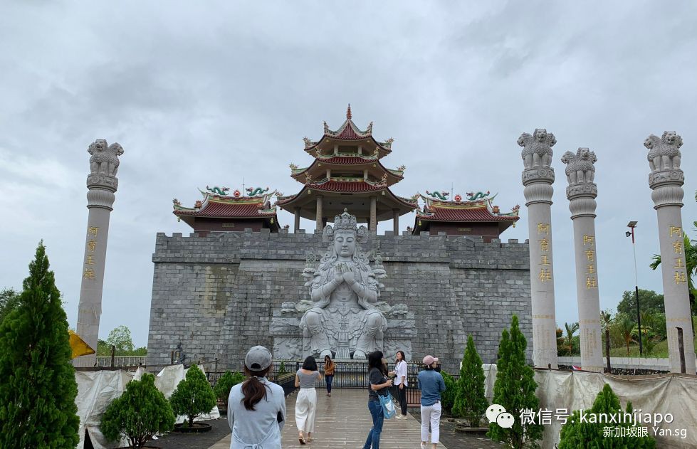 这个寺庙怎么来的呢?最开始是几个好朋友在一起喝茶聊天,有人说,咱们搭一个凉亭供大家喝茶吧,然后凉亭就建成了。后来,一些新加坡、马来西亚、印尼民丹岛的商界好友又在一起谈起建寺庙行善的事,然后一拍脑袋就决定了,而且要做就做大的,最后成为了一个景点。