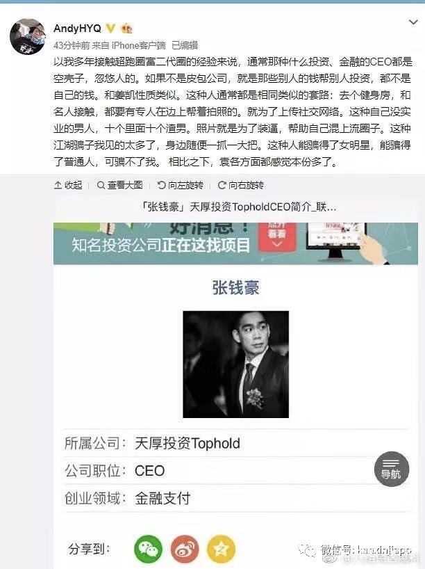 围观群众,痛骂渣男的同时,也将目光投向了袁巴元曝光的张雨绮新加坡新欢——张钱豪。