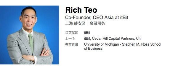 张钱豪拥有十年华尔街投资经验,曾在美国纽约的citi bank担任金融分析师。现在他还是比特币交易公司itBit的共同创始人以及CEO,itBit市值约2700万人民币。
