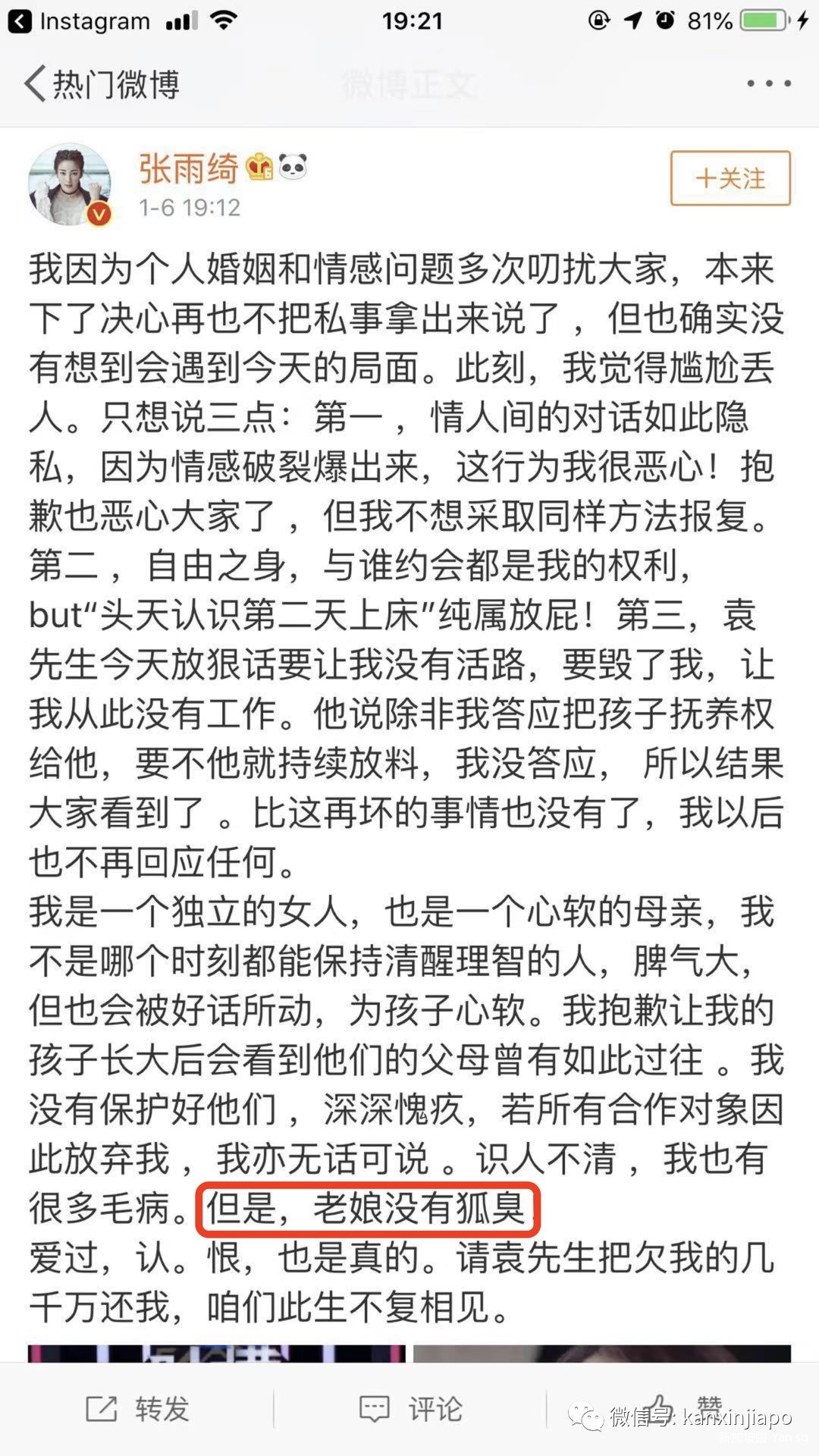 就在吃瓜群众纷纷猜测对话真假时,张雨绮做出了官方回应……对话截图属实,但是张雨绮表示“老娘没有狐臭”!(也是相当爱美了)