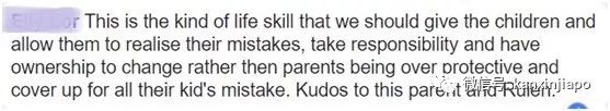“我们应该告诉孩子这样的生活技能,让他们认识错误,承担责任,并自觉地去改正,这远远好于父母国度的保护孩子而去遮掩他们的错误。赞赏这个爸爸和瑞恩。”