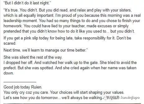女儿迟到还没写作业,新加坡爸爸却感到自豪