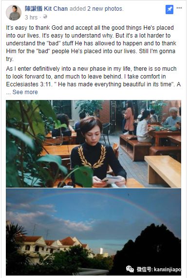 离婚消息热传后,陈洁仪今天在面薄和围脖发帖: