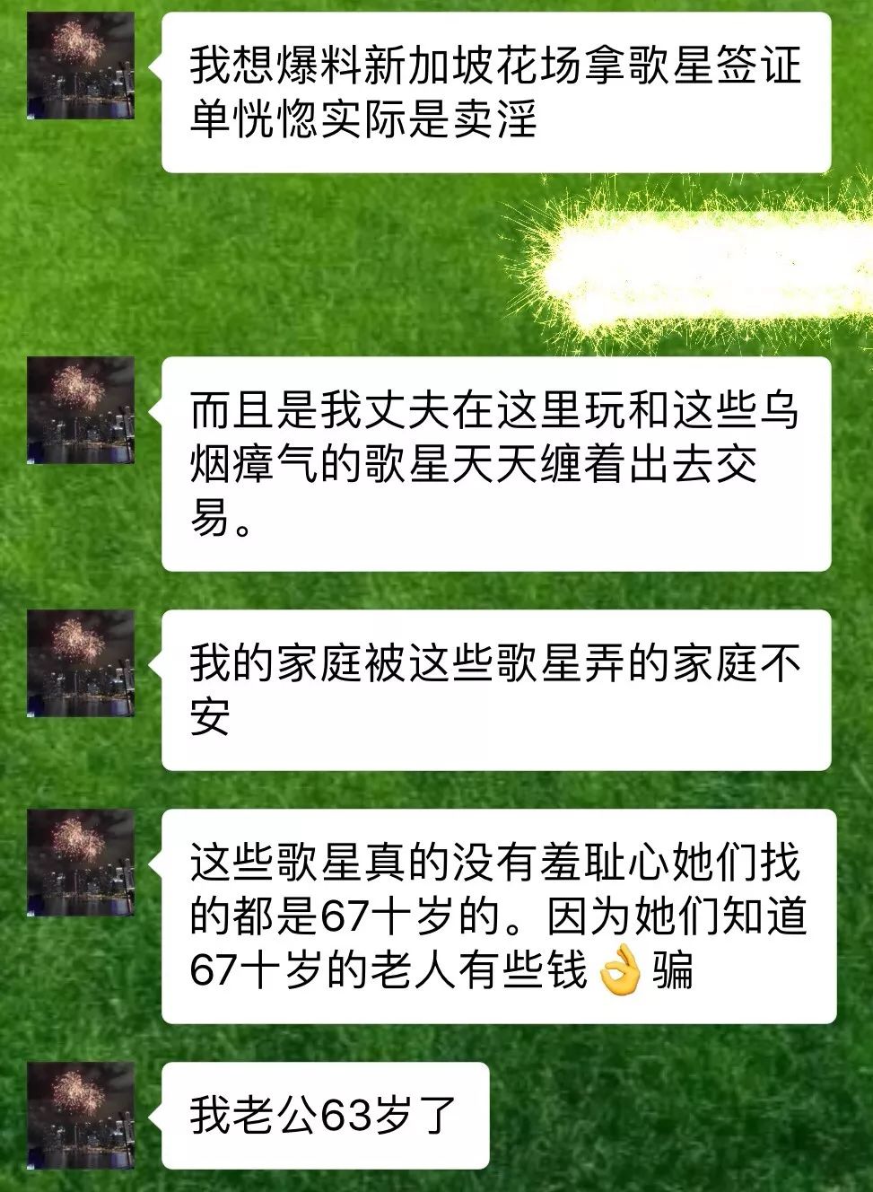 就像文中的这位安哥,老婆用尽各种办法都没能止住他去花场,所以,上周,她选择了报警,并为警察提供了相关的资料,希望警察能够制止这些并不是歌星的“歌星”在新加坡从事违法活动。警察受理了此案,新加坡眼将会跟踪报道……