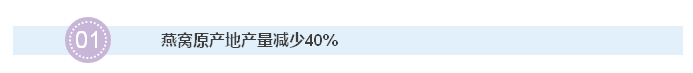 森林过度开发和气候变化(简单说就是东南亚地区一会儿水灾,一会儿旱灾)造成燕子的食物链受到干扰,引发近年来燕窝的产量普遍下跌(其实似乎官方说法一般都是这些原因)。