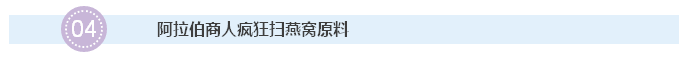 据燕窝业内人士说,马来西亚、印尼等燕窝产地出现了一批阿拉伯商人疯狂扫货。提到阿拉伯商人,这些来自石油国家的商人,可以说是富得冒油,他们整飞机整飞机的从马来西亚和印尼采购燕窝,这种疯狂扫货行为也直接导致了毛燕的紧张,助推了燕窝价格的上涨。