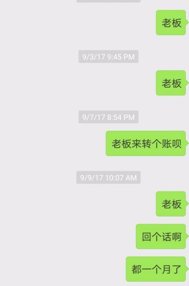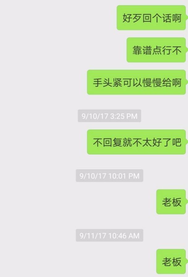 出于好心体谅,打算沟通下,让他分期还钱,结果还是联系不上,直到9月7号的时候看他朋友圈发了新的状态,于是就在状态下留言,结果也是不回复。