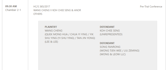 按诉方律师的说法:宋承认收到三名起诉人的300多万元新币,没说钱的去向;她申报的唯一银行户头只有1万多存款。