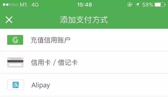 ▲(Grab手机APP添加支付方式界面)