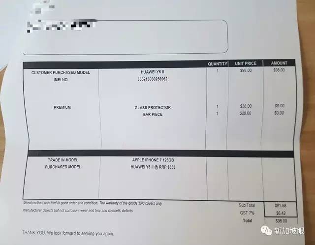 后来决定买那个华为Y2 II,这个时候那个销售开始说什么母亲节促销,送耳机和保护膜,但是为了admin purpose(文案需求的意思吧),需要签成old phone trade-in(旧机换新机)。在正规商店也没多心,就说好。