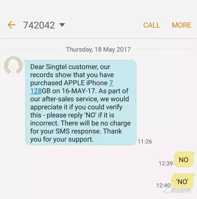 我5月19日去找了CASE,CASE的人帮我看了,说contract上面显示是买了个新的iphone,这个新的手机,应该就是被singtel shop自己收下来了。其实我周四就收到了apple让我确认的信息,我还回复了没有买。