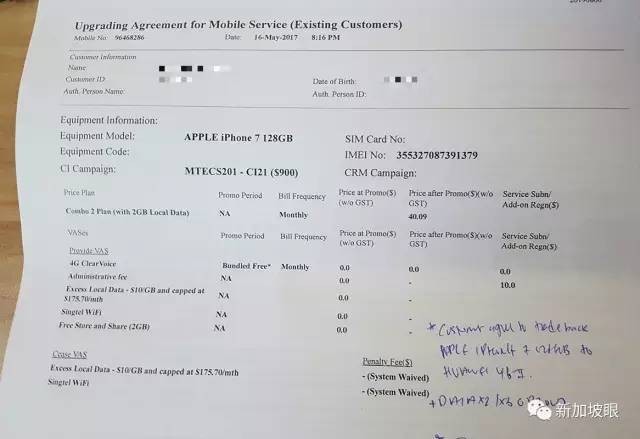 编者按网友行走在夜间的吃货 向我们发来投诉,声称自己在新电信官方店里遇到了诈骗。新加坡眼原函照登,建议大家在签任何配套之前,都仔细看清楚,小心消费陷阱。 其他方如有更多信息,可以联络新加坡眼(邮箱[email protected])。
