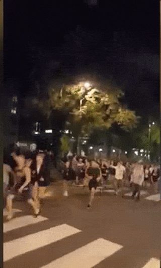 再看看民众多反感恶作剧。你没看错,这群狂奔中的愤怒的群众们,都是为了抓一个恐怖小丑……