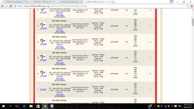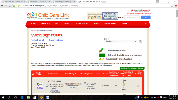 找托幼机构的方法和上面找学生托管的方式类似,可以在MSF的网站找,也可以去Early Child Development Agency (简称ECDA)查。我之前是在ECDA查的,右边蓝色的栏里可以输入信息然后搜索。