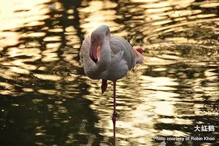 大红鹤是红鹤家族最大的成员,雌雄红鹤都拥有色彩鲜艳的粉红色羽毛,翅膀上还带有一些红色。它们的绚丽色彩是从饮食中所摄取的甲壳类动物而来,如果和没有这类的饮食补充的话,它们的颜色就会变得暗淡无光。