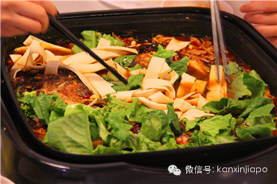 不一会就端上来一大锅,早就知道他家量足,不过还是略惊讶居然有这么足!锅里除了外酥里嫩的烤鱼之外,还可添加多种健康配菜:豆皮腐竹,蘑菇,各种蔬菜,在香浓的汤汁里翻滚,入味,香辣爽口,过瘾!