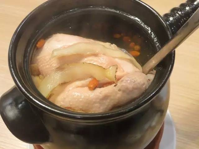 汤品试了原盅药材炖鸡汤(Double-boiled Chicken Soup with Chinese Herbs,每锅$24.80)。滋补炖汤里使用了甘榜鸡与七种中药材如玉竹、当归、淮山、甘草等等,慢火炖煮超过4个小时,入口暖心暖味,浓郁香醇。