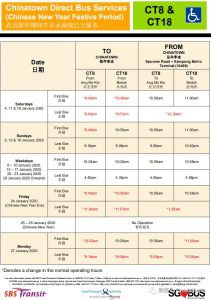 如果大家想在农历新年前往牛车水购买年货、赏灯等,请留意春节期间巴士运营时间变化: