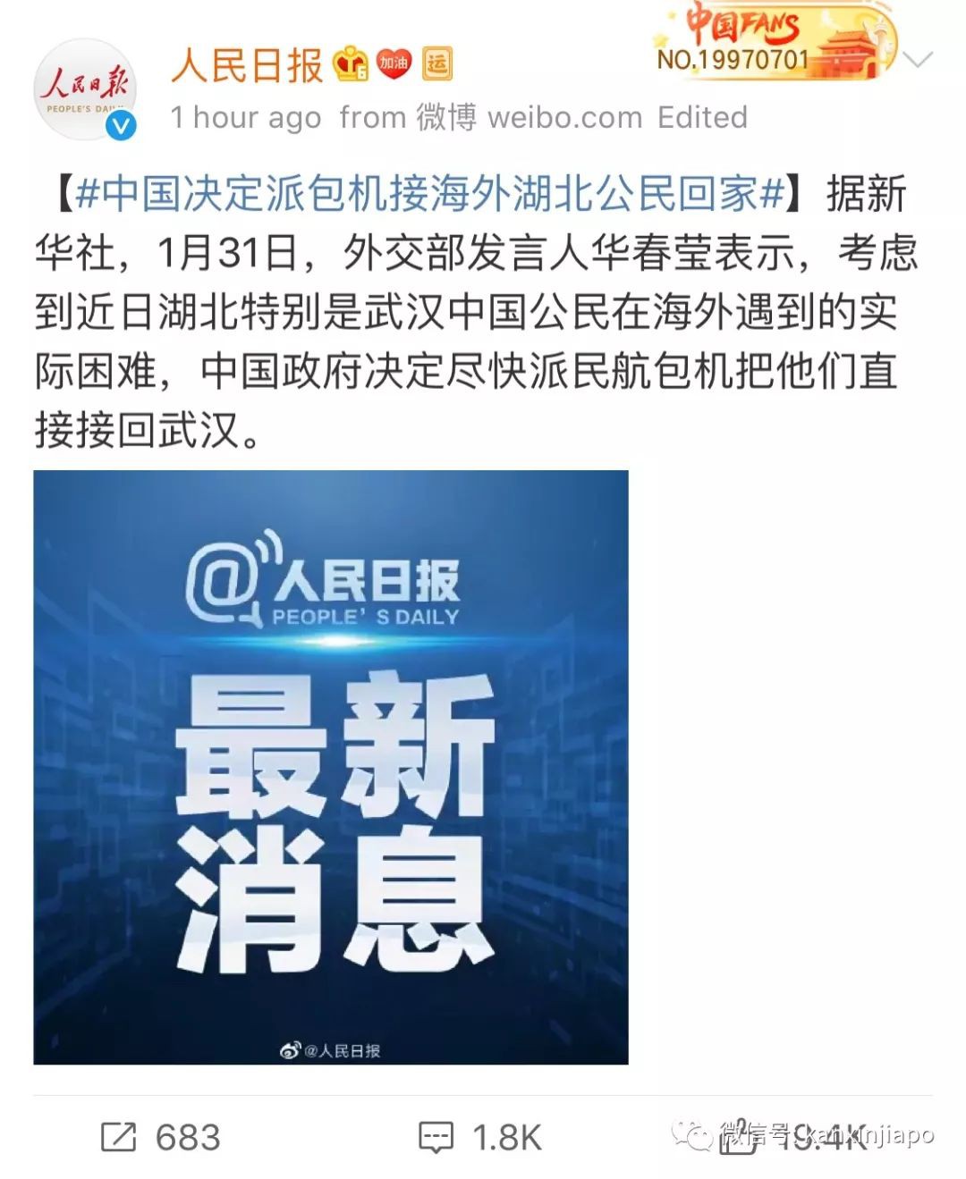 另外,中国驻新加坡大使馆已经开始要求在新加坡的部分中国公民向使馆报备,说明是否有回国意愿等。对于是否会派包机来新加坡,目前还没有官方通知,我们会持续留意,及时告诉大家~