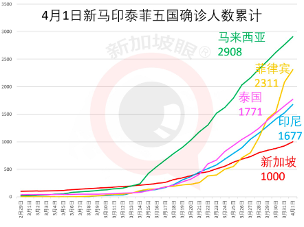 邻国方面,马来西亚今天新增142例,累计2908例。印尼新增149例,累计1677例。菲律宾今增227例,累计2311例。