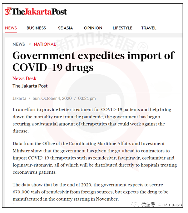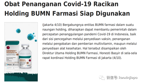 《雅加达邮报》报道,印尼政府正加紧冠病疫苗进口工作,计划今年底之前进口67万剂瑞德西韦(Remdesivir),而且准备11月开始在印尼本土生产瑞德西韦。 同时,印尼与中国科兴生物制品公司合作研发的冠病疫苗目前已经进入第三阶段临床试验,开发成功后则由印尼国有制药公司Bio Farma进行生产。 Bio Farma日前宣布,直至9月底,与北京科兴合作开发的疫苗已有1319名志愿者接受一次注射,656名志愿者接受了二次注射,其中244名志愿者在二次注射之后接受了抽血检测,至今未有不良反应报告。