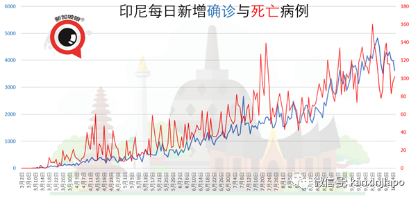 10月5日,印尼新增3622起确诊病例,累计307120起,连续27天新增3000起以上,但增速比前6天稍缓。 从图表上看,印尼疫情仍处于上升期。 当天通报102起新增死亡病例(累计11253起)。 印尼新冠死亡病例人数为东南亚最高。