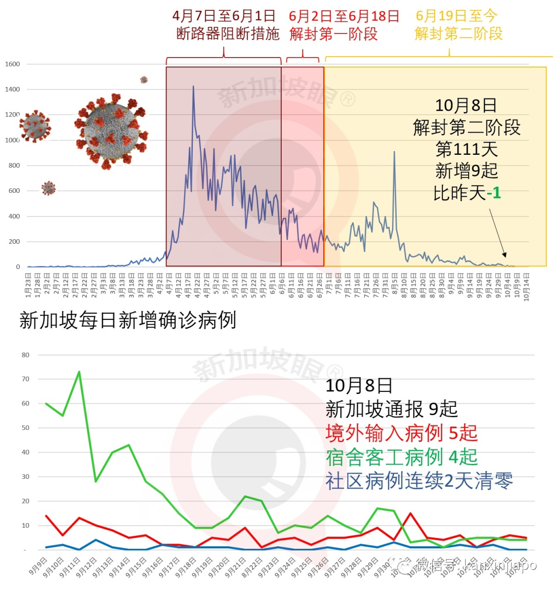 新加坡昨增10起 10月7日,新加坡卫生部通报新增确诊病例10起,累计57840起。 10起病例当中,含客工宿舍病例4起、境外输入病例6起,社区病例无新增。无症状的有8起,出现症状的2起出现在境外输入病例。从8月29日至10月7日,新加坡一共出现1217起病例,出现症状的有54起,占4.4%,其余95.6%为无症状,有1163起。 10月7日,卫生部通报无新增感染群。 自9月15日起,连续23天无新增感染群。希望能维持零新增。 境外输入昨增6起含1起源自法国的中国籍客工昨天通报境外输入病例6起,4起为无症状,2起出现症状,在指定地点执行14天居家通知SHN时,检测结果呈阳性而确诊。 源自缅甸有3人,源自法国、菲律宾、英国各有1人 国籍:缅甸3人,中国、菲律宾、印度各1人 身份:WP客工4人,持工作证件1人,持短期探访证1人23岁中国籍男子(第57986例),WP客工,从法国入境,无症状,10月6日检测结果呈阳性而确诊。此起属于法国输入病例。新加坡上次出现法国输入病例分别是10月1日、9月28日、9月17日。 35岁印度籍男子(第57990例),妻子是新加坡公民,他持STVP短期探访证,从英国入境,10月4日出现症状,6日确诊。此起属于英国输入病例。新加坡上一次出现英国输入病例是8月21日。 出现近期的首次缅甸输入病例 昨天出现3起源自缅甸的境外输入病例。据《新加坡眼》统计,这是新加坡这三个月来第一次出现源自缅甸的境外输入病例。 昨天也是多日来首次无印度输入病例。上一次无印度输入病例是9月20日。 社区病例无新增10月7日,卫生部通报本地社区病例零新增。 上一次通报社区病例零新增是9月27日,是九天前。 久违了。 新发病患到过的新增地点 卫生部对新发病患过去14天活动进行追查,10月7日没有通报新发病患到过的新增地点。 客工宿舍昨增4起皆无症状 10月7日,新加坡卫生部通报,住在大型集体宿舍和工厂改建宿舍的客工(WP)新增确诊4起,皆无症状。 此4起病例中,1起是在集中隔离状态的客工,3起是在每14天定期轮检中探测到的病例。 客工宿舍病例连续6天维持在低个位数。希望能保持。 截至10月7日,客工宿舍一共有54475起病例,感染率为16.87% 重症病例仍为1人 10月7日,新加坡卫生部通报,当天病愈出院12人,累计病愈57624人,为总病例之99%;现存病患为190人,比前天减1人。 昨天的现存病患包括:中症病房有39人,比前天减3人;150人在社区护理设施或社区康复设施,比前天增2人。 重症加护病房无新增,维持在1人。祝愿早日康复。 新加坡自8月5日无新增死亡病例(累计27起)。 泰国昨增15起境外输入包括源自香港特区、美国 10月7日,泰国确诊病例新增15起,皆为境外输入病例,累计3615起。 15起当中,源自南苏丹有6起,源自美国有3起,源自印度和孟加拉各有2起,源自香港特别行政区和缅甸各有1起。 源自香港特区的是一名36岁泰国籍男子,9月23日入境,在隔离的第11天接受第二次检测时确诊。 源自南苏丹的6起皆为陆军工兵军人,与先前确诊的25个军人于9月22日乘搭专机入境。此6人在隔离的第11天接受第二次检测时确诊。 泰国自9月18日以来无新增死亡病例,维持在59起。 印尼昨增4538起确诊为11天以来新高10月7日,印尼新增4538起确诊病例,是11天以来的最高,累计315714起,连续29天新增3000起以上。 从图表上看,印尼疫情仍处于上升期。 当天通报98起新增死亡病例(累计11472起)。 印尼新冠死亡病例人数为东南亚最高。 菲律宾昨增2825起确诊疫情持续缓解10月7日,菲律宾新增2825起确诊病例(累计329637起),从图表上看,菲律宾疫情正处于高峰之后的缓降。 菲律宾当天通报60起新增死亡病例(累计5925起)。 根据菲律宾统计,85.9%病患为轻微症状,9.4%为无症状,1.5为重症,3.3%为病危。