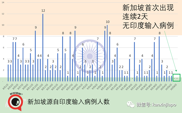 31岁法国籍男子(第57994例),10月5日持短期探访证STVP从法国入境,隔天检测呈阳性而确诊。他是工程师,到新加坡是为了参与短期工作项目。 连续2天没有出现印度输入 昨天、前天皆无通报印度输入病例。这是首次出现连续2天没有通报印度输入病例,实属难得。