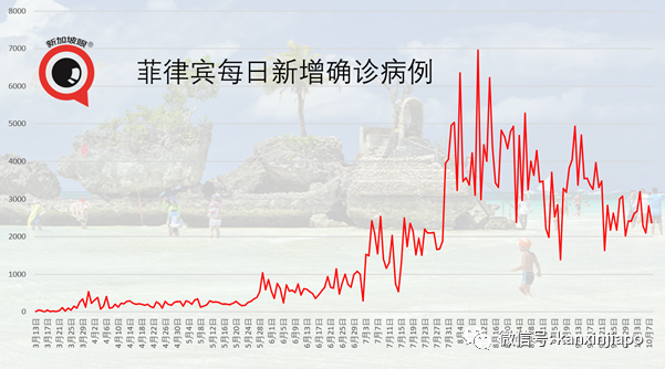 10月8日,印尼新增4850起确诊病例,为疫情发生以来的单日最高,累计320564起,连续3天新增4000起以上。 从图表上看,印尼疫情仍处于上升期,丝毫未见峰值迹象。 当天通报108起新增死亡病例(累计11580起)。 印尼新冠死亡病例人数为东南亚最高。 菲律宾昨增2363起确诊疫情持续缓解