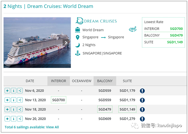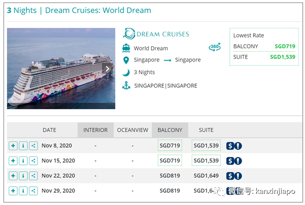 公众可选择配套从2晚至4晚,普通房票价将介于334新币至869新币,套房价格更高,最高的应该是2313新币的“船主套房“。