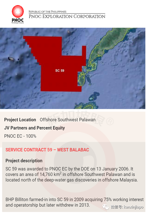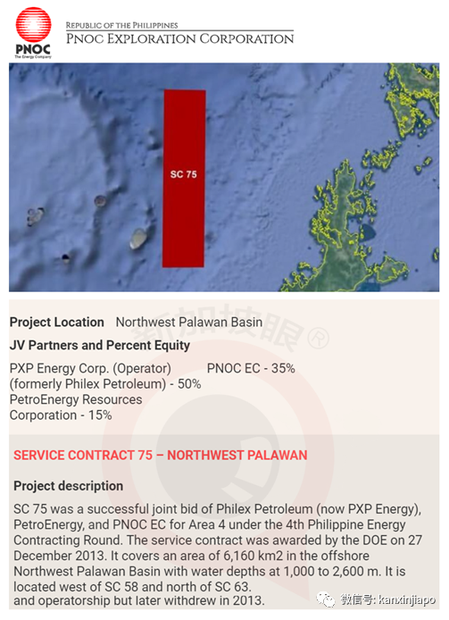 (马兰帕亚气田的能源储存情况。图源:Malampaya Gas Project脸书) 三个勘探项目可重启 可重新启动的三个项目中,菲律宾国家石油公司(Philippine National Oil Company)运营SC 59项目和SC 72项目,PXP 能源集体则运营SC 75项目。 路透社称,禁令解除后,两个勘探相关的项目已经被允许开始。