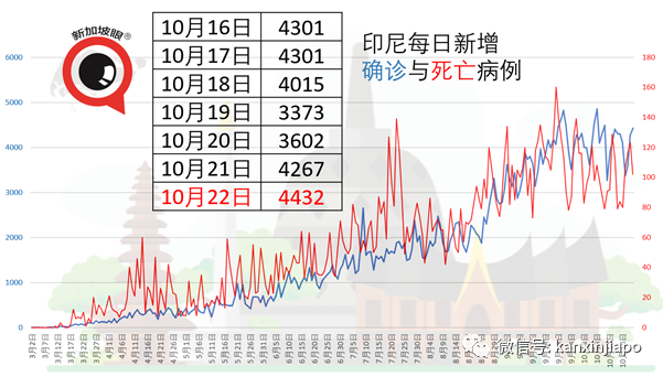 10月22日,印尼新增4432起确诊病例,累计377541起。 从图表上看,印尼疫情仍处于上升期,丝毫未见峰值迹象。 当天通报123起新增死亡病例,累计12959起。 印尼新冠确诊病例和死亡病例人数皆为东南亚最高。 菲律宾昨增1509起确诊疫情持续缓解