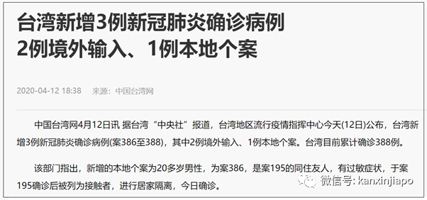 台湾地区流行疫情指挥中心5月31日举行记者会通报,连续49天无本土确诊病例。 换句话说,台湾自4月13日起无新增本土病例,维持在55起,从4月13日至10月22日,已有192天。 这是4月12日通报的本土病例: