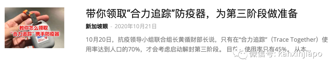 其实,便携式追踪器主要是为不带手机或不方便用智能手机的人群而设,如老人和小孩。到了12月,政府将要求访客以“合力追踪”或携手防疫器登记,才能进入办公地点、学校,以及购物商场、餐饮店等公共场所。消息传出之后,不少民众前去排队领取,一度排队两小时以上。当局提醒,民众应该先查询指定地点防疫器是否仍有存货才前去领取,而且,如果已经使用手机上的“合力追踪”应用APP,就无须领取携手防疫器。新加坡昨增14起确诊其中3起为本土病例10月24日,新加坡卫生部通报新增确诊病例14起,累计57965起。这14起病例当中,11起为境外输入病例,本土病例有3起,包括本地社区2起、宿舍客工1起。12起无症状,2起出现症状;出现症状的是本地社区病例。