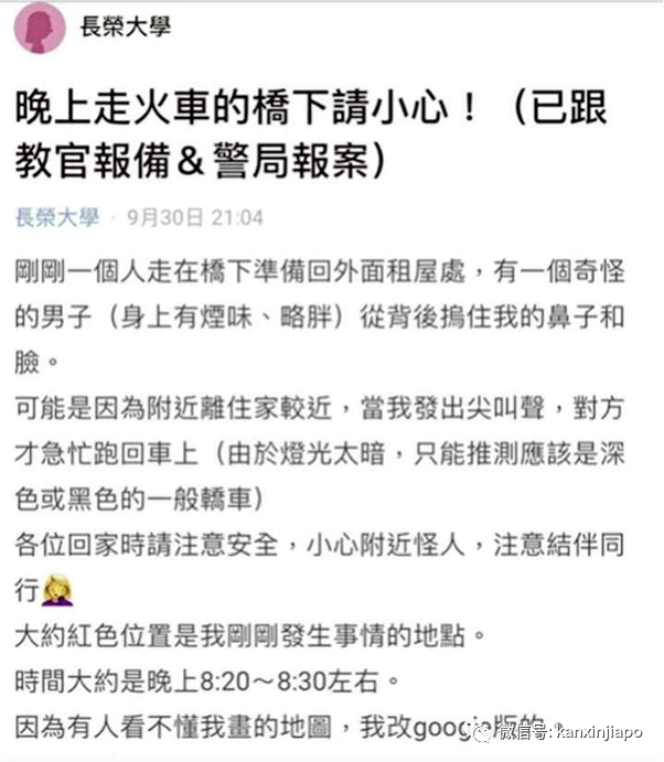 (嫌犯梁育志) 上个月曾发生女生险被掳走事件 台湾媒体报道,鍾筱玲遇害之前,九月也发生长荣大学另一名女大生差点被掳走事件。