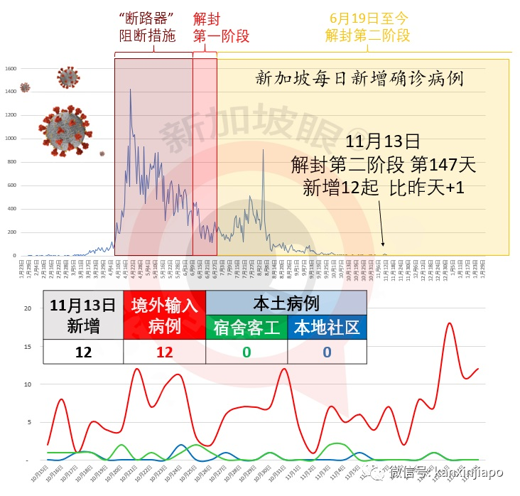 11月13日,新加坡卫生部通报初步统计:今天新增确诊12例,累计58114例。新增病例当中,全都是输入病例,今天没有本土传播病例。卫生部将在今晚公布其他详情。