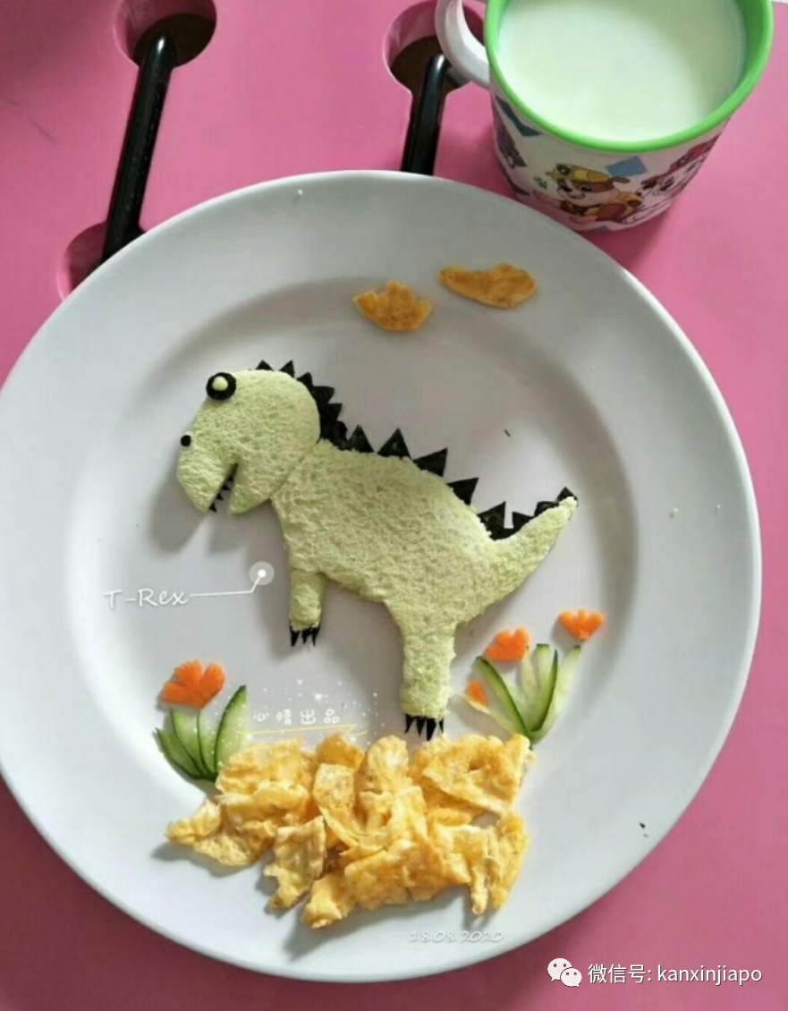 (编号90)这是美术老师做的早餐吗?小恐龙的眼睛、鼻子、连牙齿都一个一个弄出来,太猛了吧!