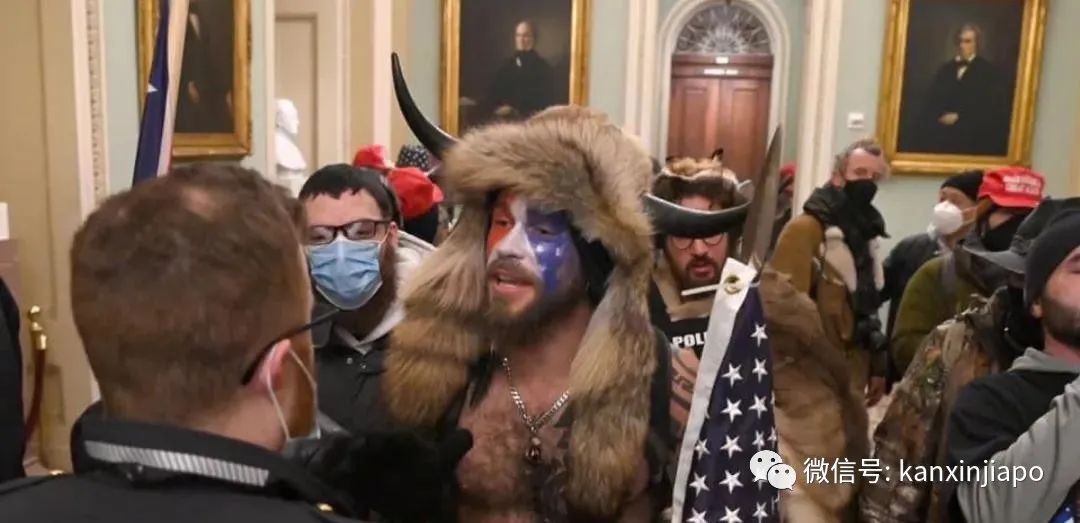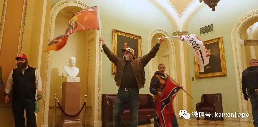 (图源:Partisangirl推特)抗议者越过路障、霸占参议院、与警方发生肢体冲突、打破窗户等。他们在参议院中游荡,并在讲台上大喊:“特朗普赢得了总统选举!”