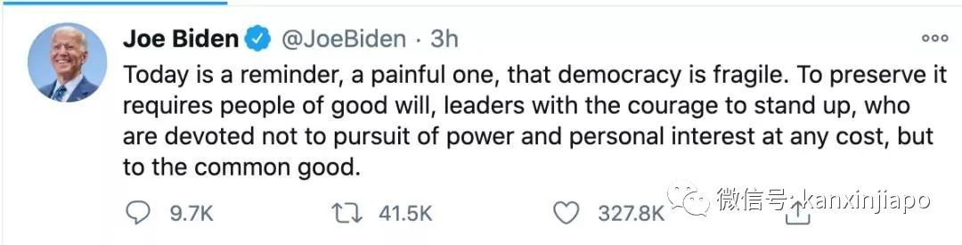 这是美国国会大厦时隔207年后遭受到的最大的一次破坏。1814年,英国曾经烧毁过这栋标志性建筑。对民主国家而言,投票是民主的形式,而投票之后政权的和平交接才应该是民主的体现。即将上任的美国总统拜登也在推特上表示,今日将是一次痛苦的记忆,民主是脆弱的。民主的维护需要支持者,需要一名为了公共利益的领导,而不是个人私利。