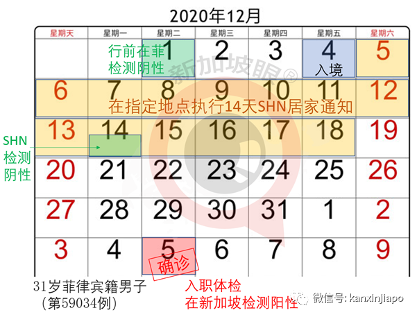 (图源:网络) 1月2日,他接受定期核酸检测时,结果呈阳性;1月4日再次接受检测,同日出现急性呼吸道感染症状。1月5日,他的个人检测出结果,为阳性,随即以专用救护车送去国家传染病中心。 他的血清抗体为阴性,意味着新近感染。他的B117变异病毒检测为初步阳性,正在核实。 连续两天出现境外输入转本地社区病例 昨天通报一起境外输入转本土病例。31岁菲律宾籍男子(第59034例),WP客工,于12月4日从菲律宾入境。在启程之前,12月1日在菲律宾所做的行前检测结果为阴性。抵达新加坡之后,在指定地点执行14天SHN居家通知,直至12月18日。在SHN 期间,12月14日接受冠病检测,结果亦呈阴性。他受雇于新加坡中央医院,尚未开工。1月5日,参加入职之前的体检,检测结果呈阳性而确诊,无症状。他的血清抗体呈阳性,意味着既往感染。